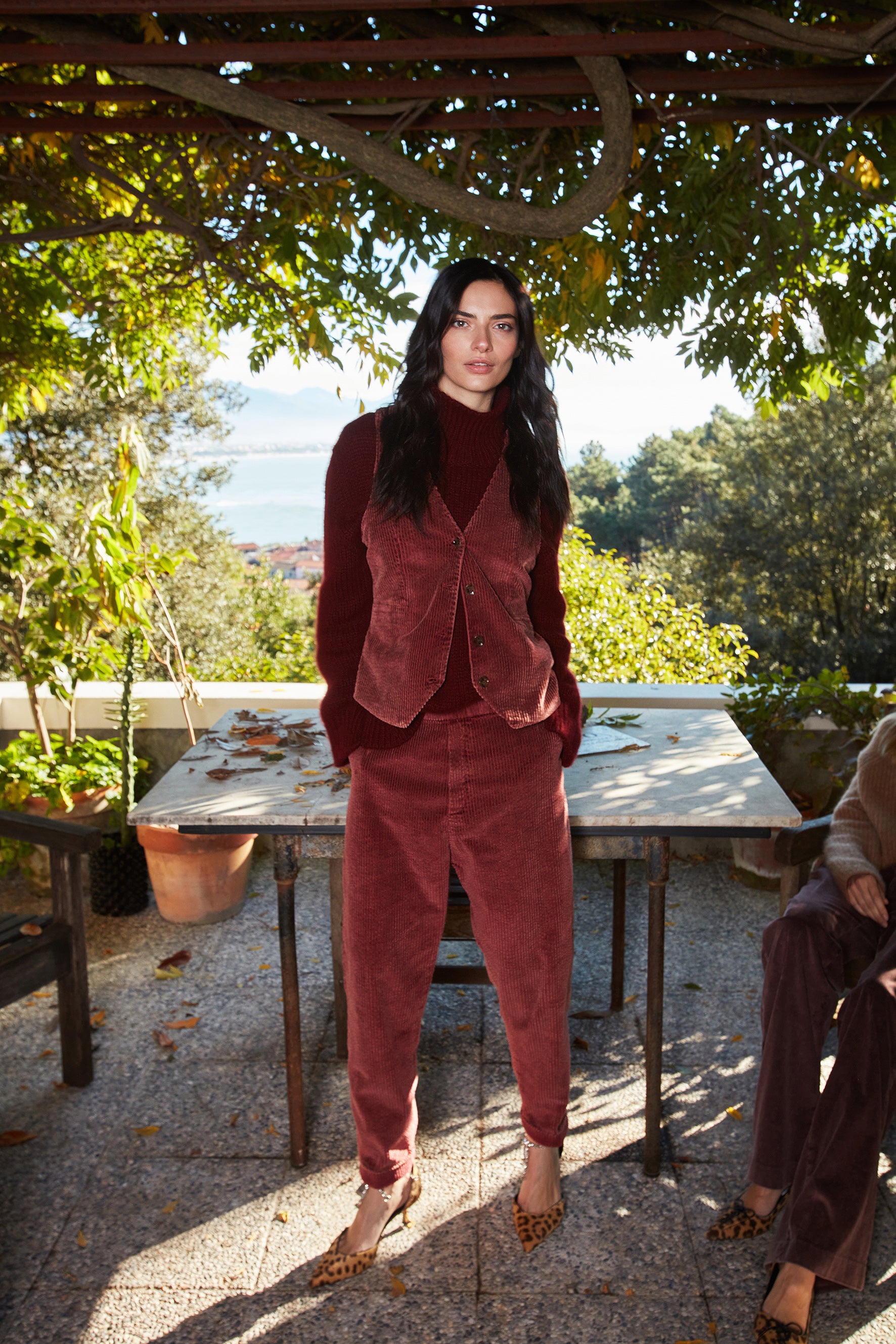 La colección FW25 realza el Malibu con pana de canalé, elaborada con mezclas de algodón orgánico y modal que acentúan su suavidad y comodidad. Este tejido, trabajado también con efecto marmolado, aporta tridimensionalidad y calidez.